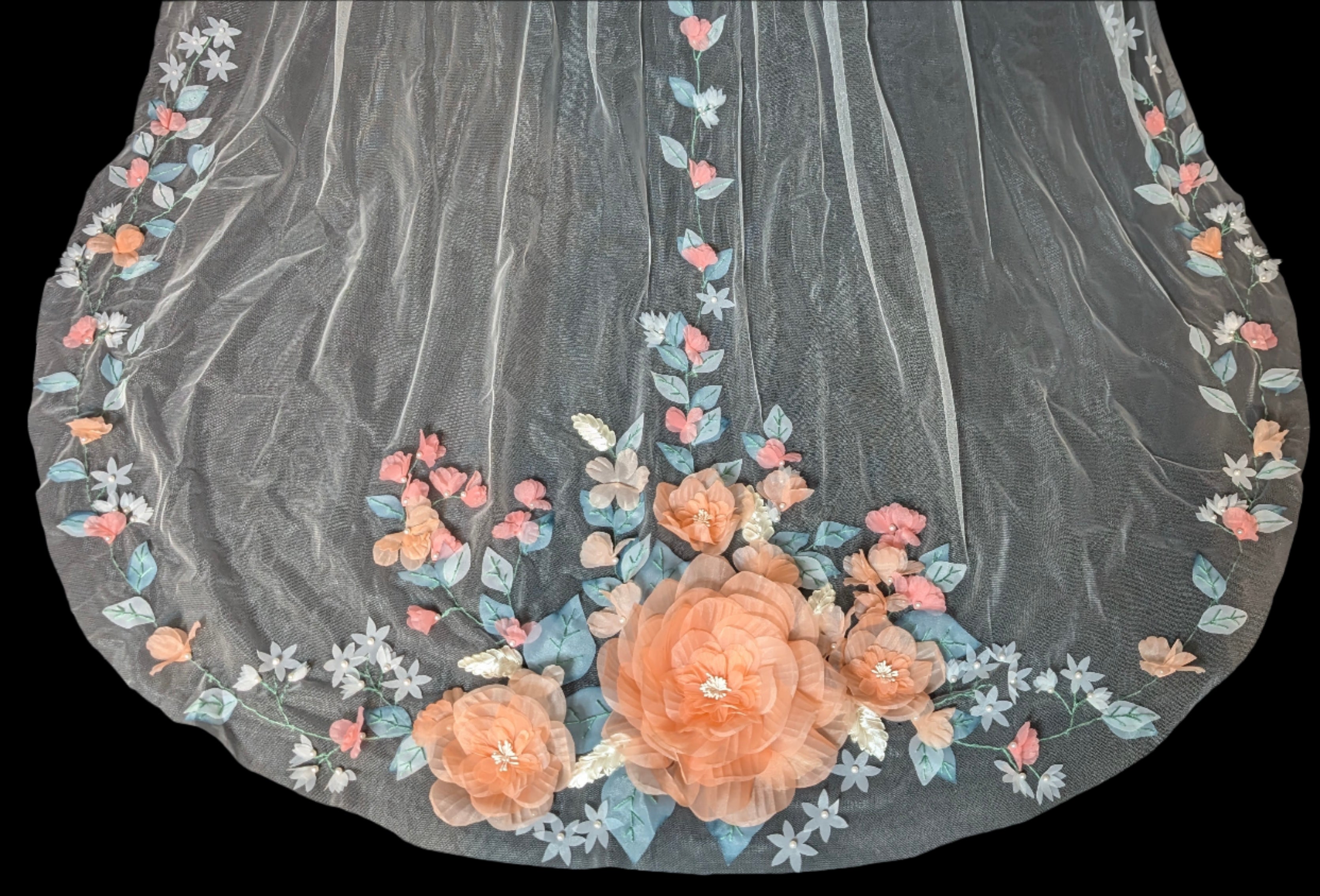3D Coral Floral Wedding Veil