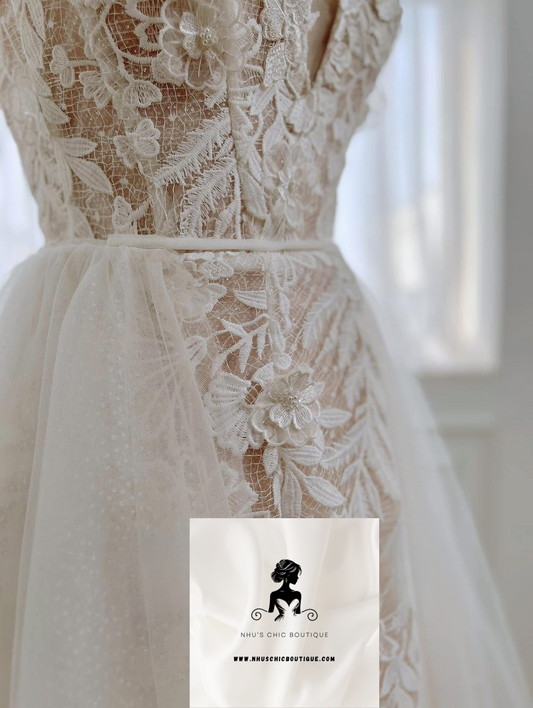 WD010 - Detachable Tulle Train Lace Bridal Dress