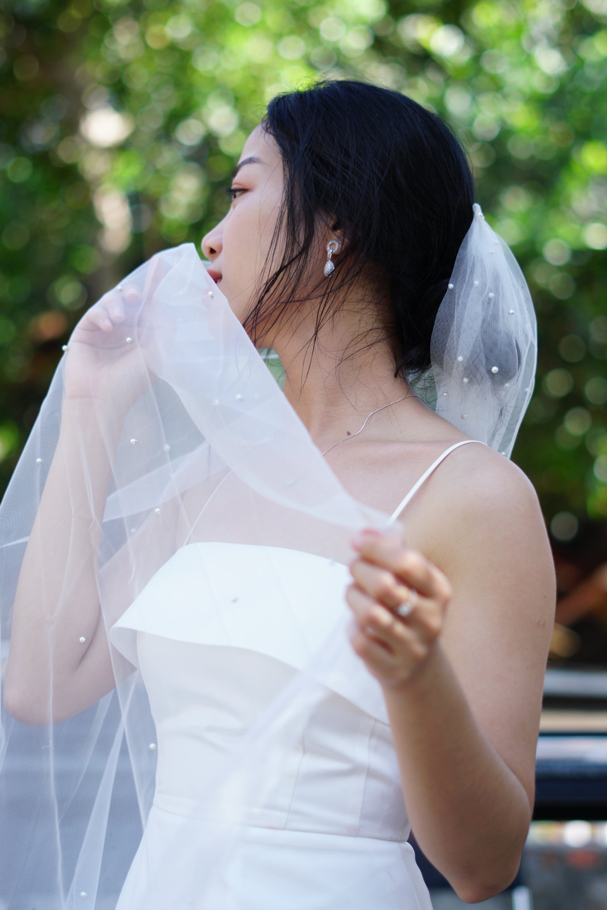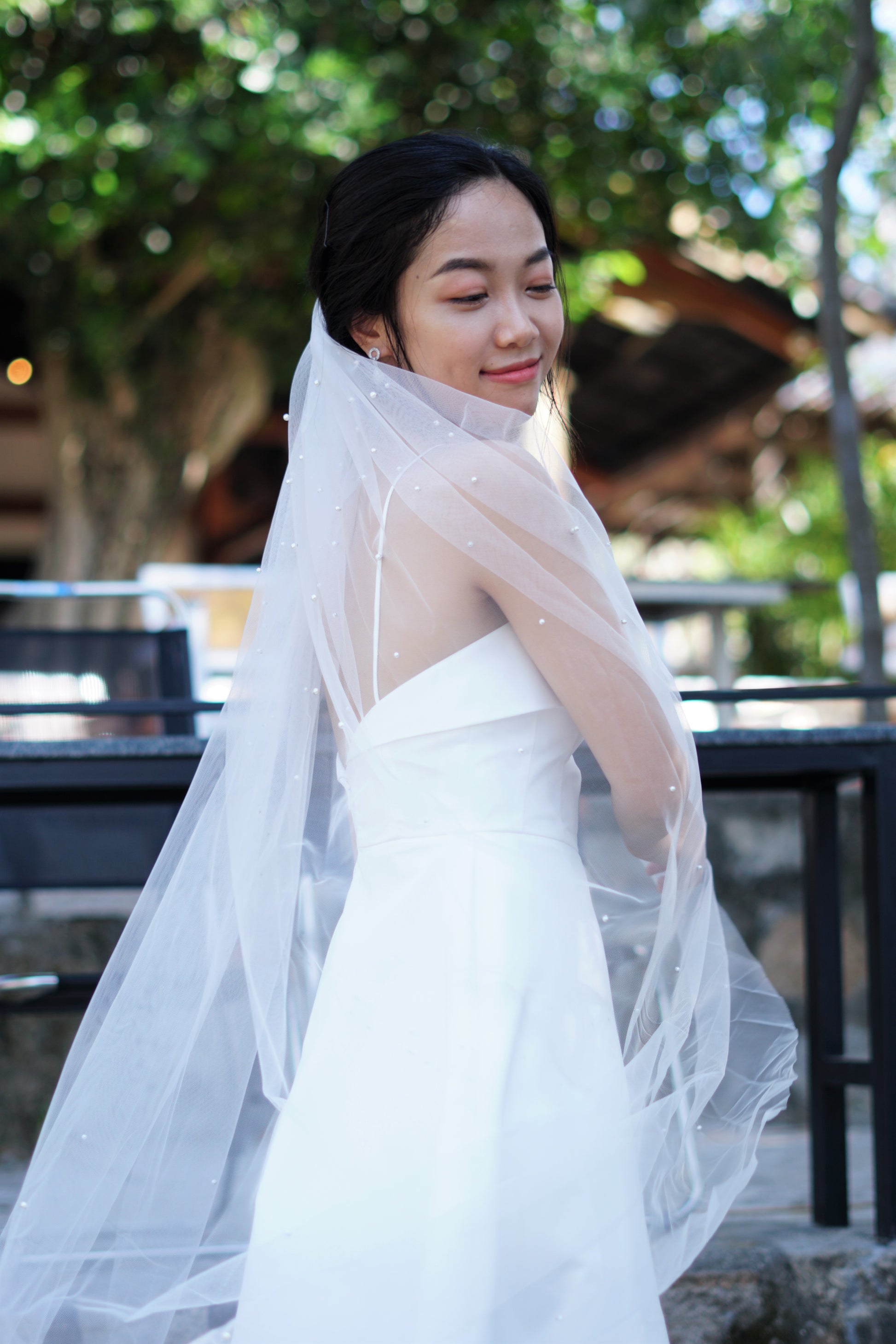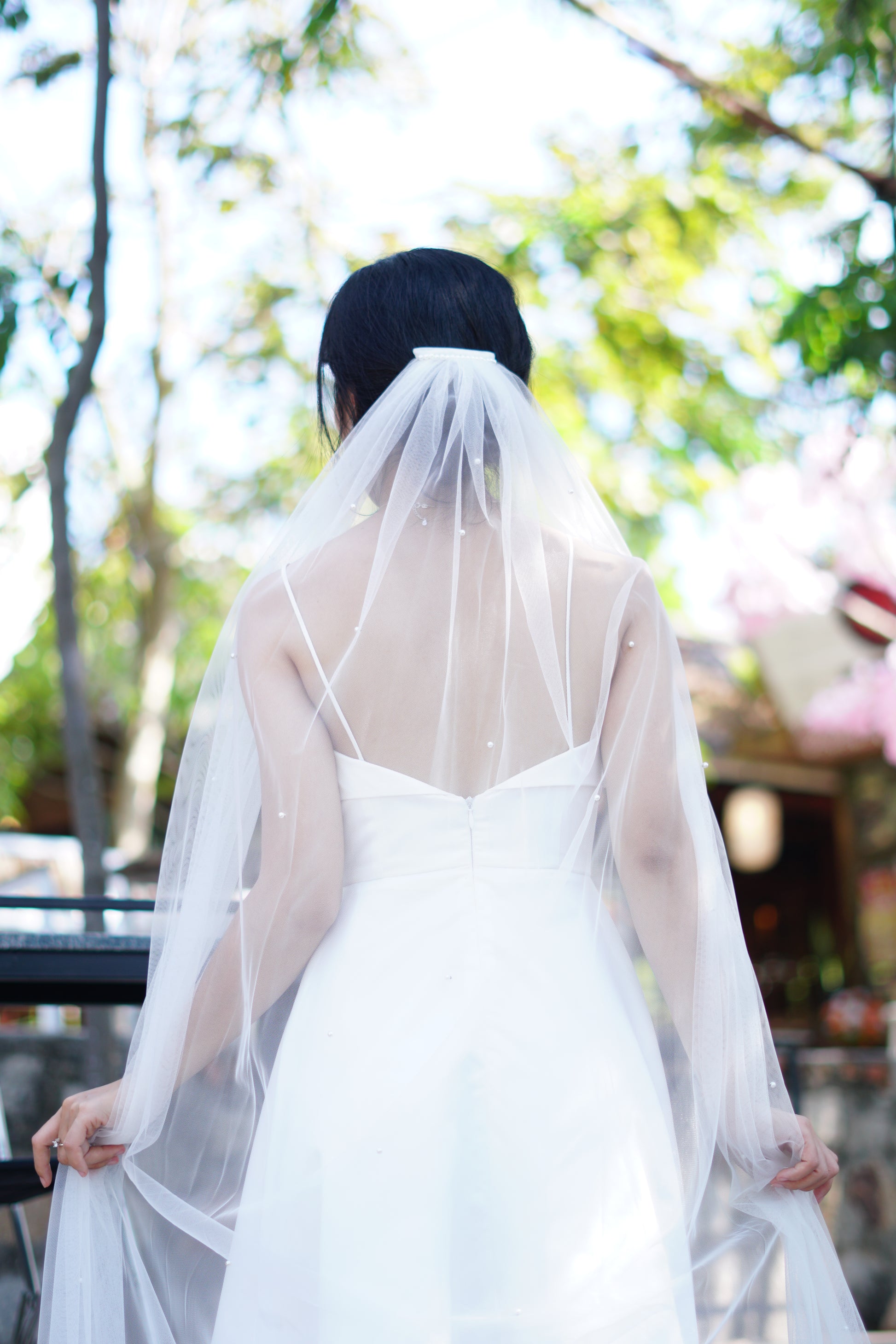 Add timeless elegance to your bridal look with this Pearl Bridal Wedding Veil. Adorned with delicate pearls, this veil offers a classic yet luxurious touch, perfect for completing your wedding day ensemble with grace and sophistication.